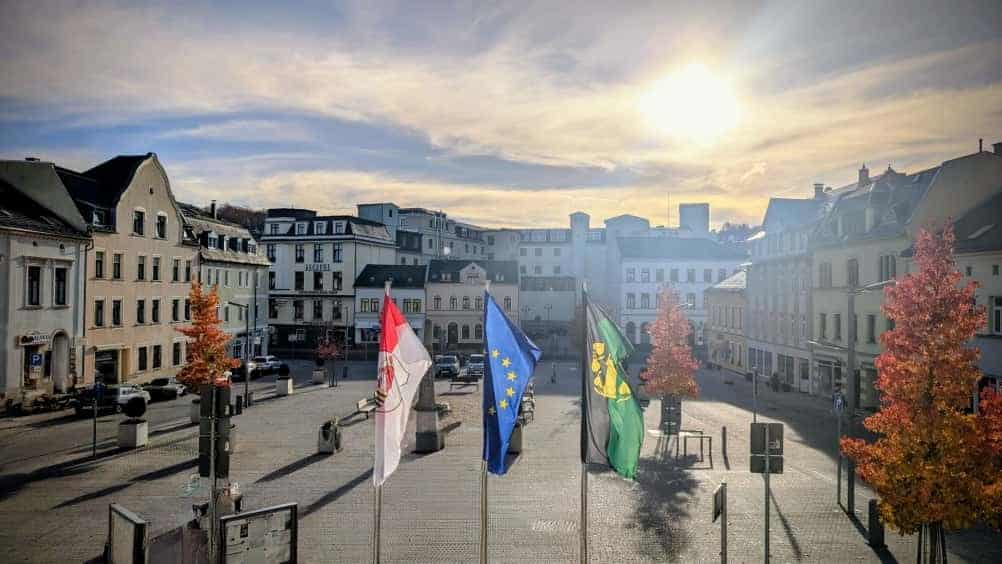 Begrüßt wurden die Habartover bereits auf dem Marktplatz, auf dem neben der Lengenfelder Stadtfahne auch die Fahne von Habartov gehisst war. Bei Kaffee und Kuchen gab es im Ratssaal eine kurze Vorstellung von Lengenfeld mithilfe der 360°-Präsentation, die auf der Webseite der Stadt Lengenfeld zu finden ist. Anschließend ging es auf einen Rundgang durch das Rathaus, bei dem sich die jeweiligen Amtskollegen fachlich austauschen konnten.